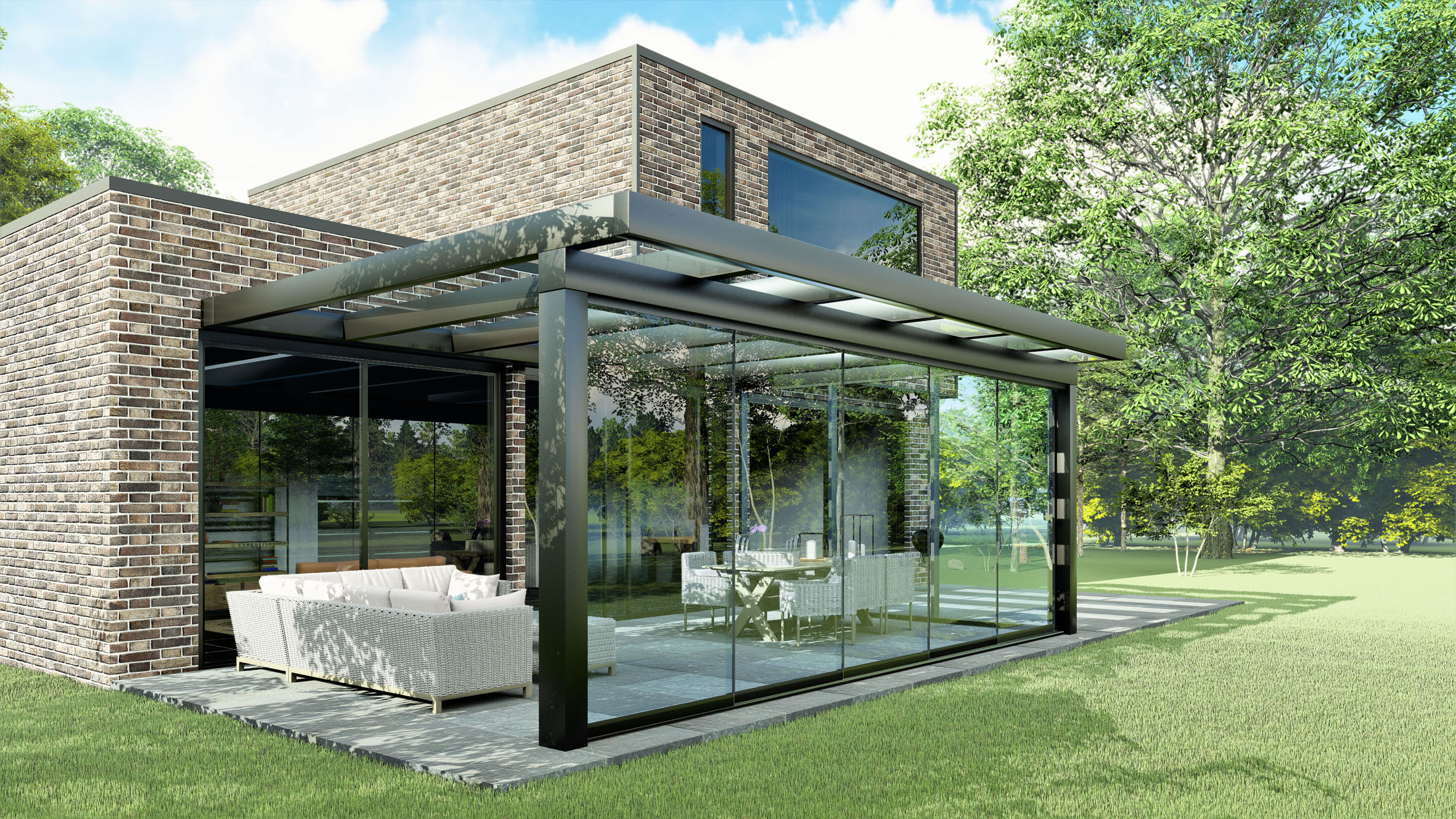 TOPLINE-Alu-Terrassenüberdachung mit Unterdachmarkise